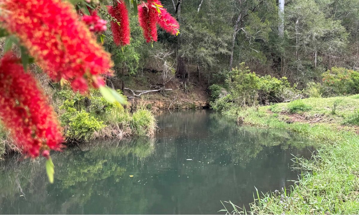 Approximately 24 hectares (60 acres) is developed under irrigation and sown to a variety of forage and fodder crops, delivering high-protein feed suitable for backgrounding, finishing, or dairy support. The balance of the property carries a strong mix of tropical grasses, complemented by areas of softwood rainforest and gum along the creek line, providing natural shelter and diversity across the un-irrigated sections.